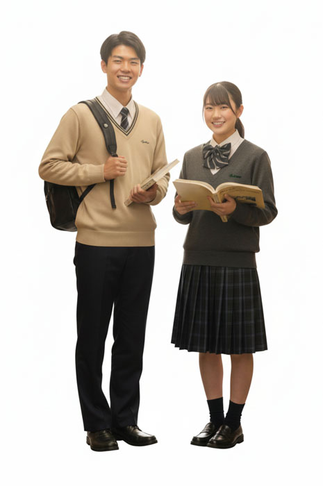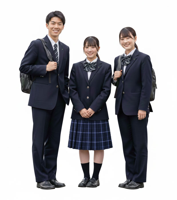 ※上記画像は本校の制服を元にした生成AIによるイメージ画像です。細部等が実物とは違う場合もありますから、ぜひ本物の写真等でご確認ください。