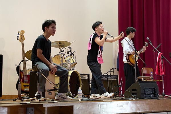 吹奏楽部 校長先生も加わってドラム&ボーカル「世界に1つだけの花」