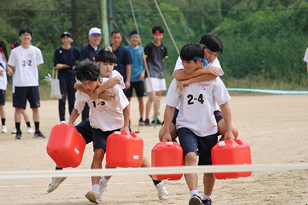 リレーや長縄といったおなじみの競技に加え、今回は新競技となる「男子ストロングマンリレー」も行われました。
