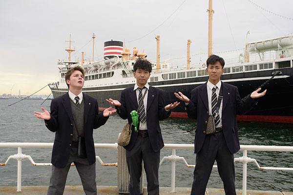 まずバスで横浜の山下公園へ 最終日で少し疲れている様子