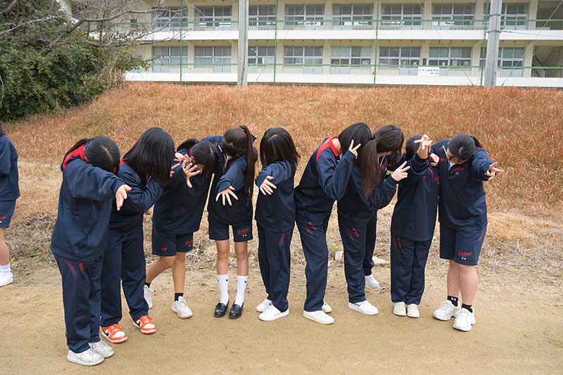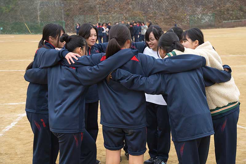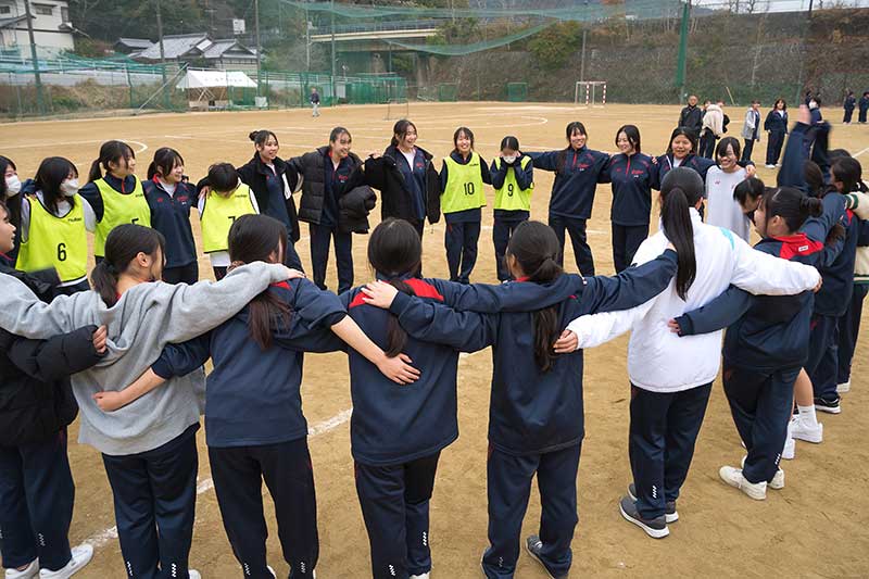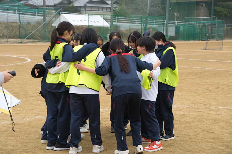 女子決勝は3年2組 VS 3年3組 試合前、3年2組は円陣を組みます