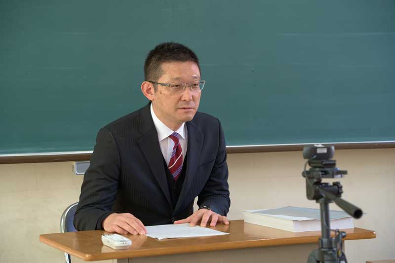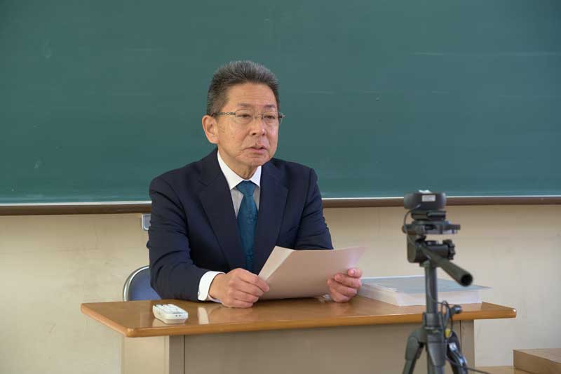 現在体育館が工事中のため、オンライン形式での始業式となりました。