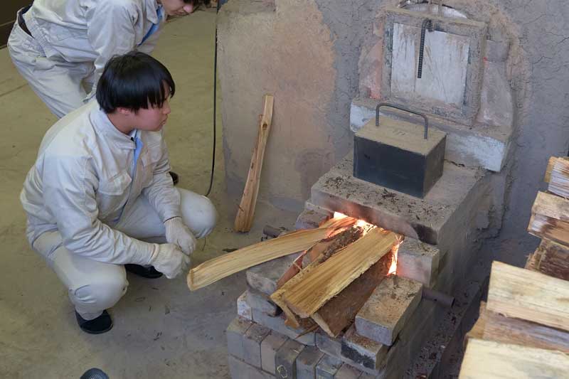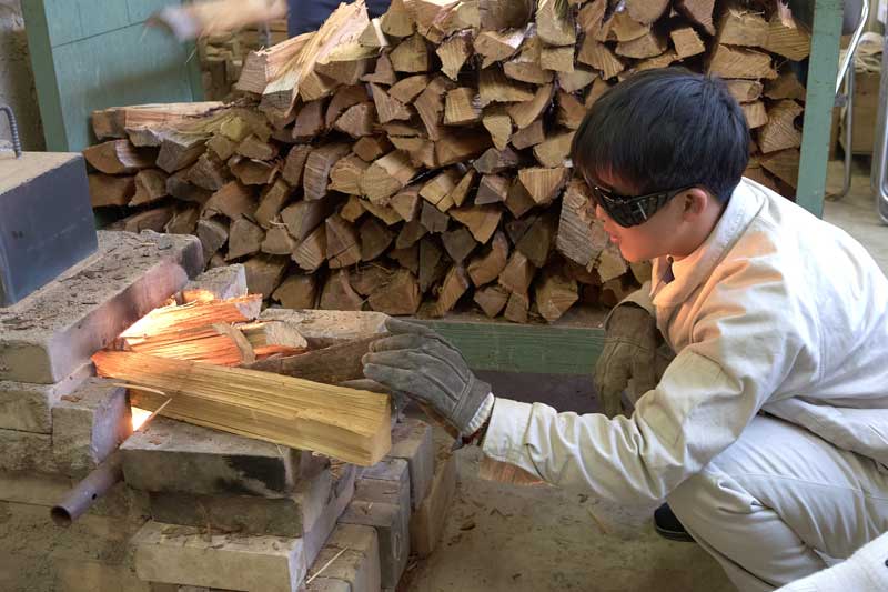 本校では今も伝統的な手法で夜通し窯焚きを行い、1年間につくってきた備前焼作品などを焼成しています。