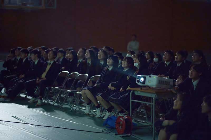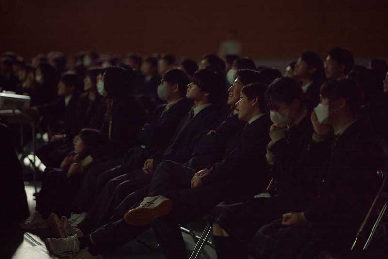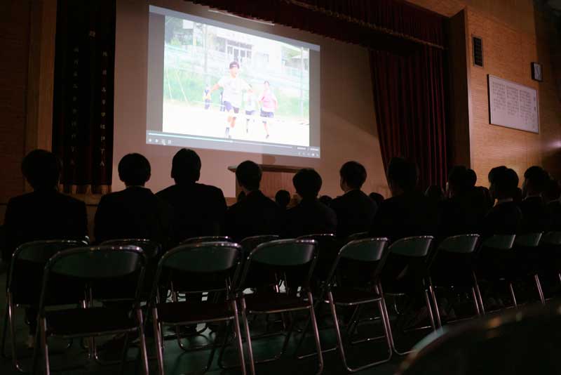 卒業生を送る会では、生徒会が作成したムービーを観て3年間の学校生活を振り返りました。