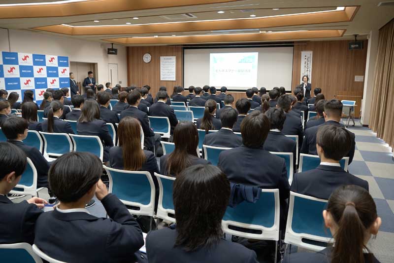3/17(火)2年生は備前商工会議所(備前市東片上)にて、ビジネスマナー研修会に出席しました。