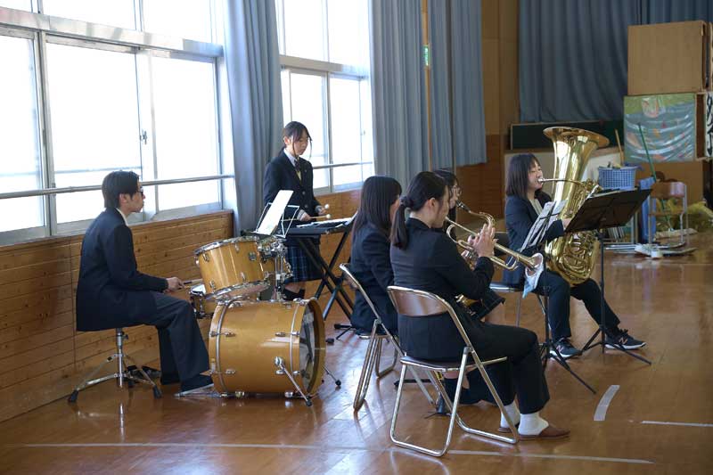 校歌斉唱 少数精鋭の吹奏楽部